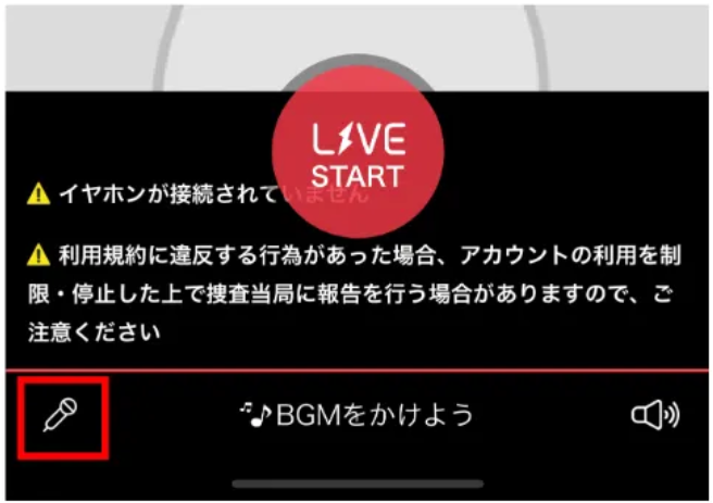 配信中の場合は、配信画面の左下にあるマイクボタンをタップすれば配信の途中からでも使えます。