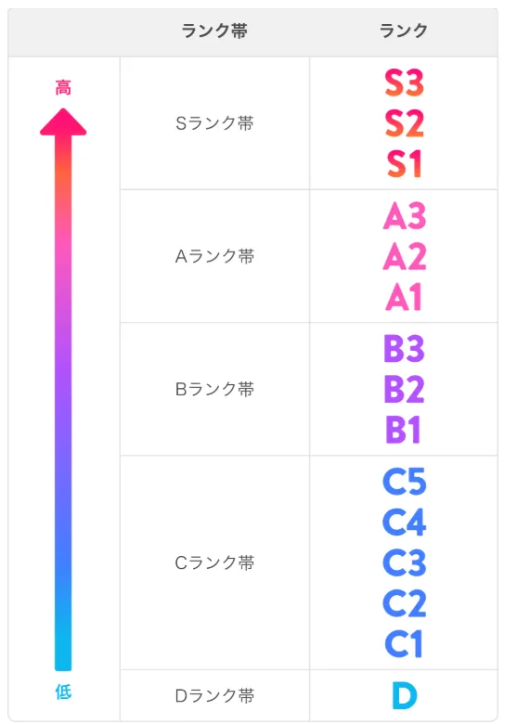 DランクからS3ランクまでの全15段階があり、上位になるほど人気・実績が高いライバーとして認識されます。
