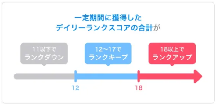 デイリーランクスコアは毎日更新され、7日間の合計値でランク変動が判定されます。