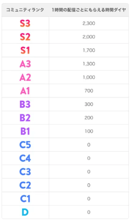 コミュニティランクが一定以上(Cランク前後)になると、時間ダイヤ(時給報酬)制度の対象になります。