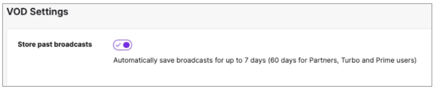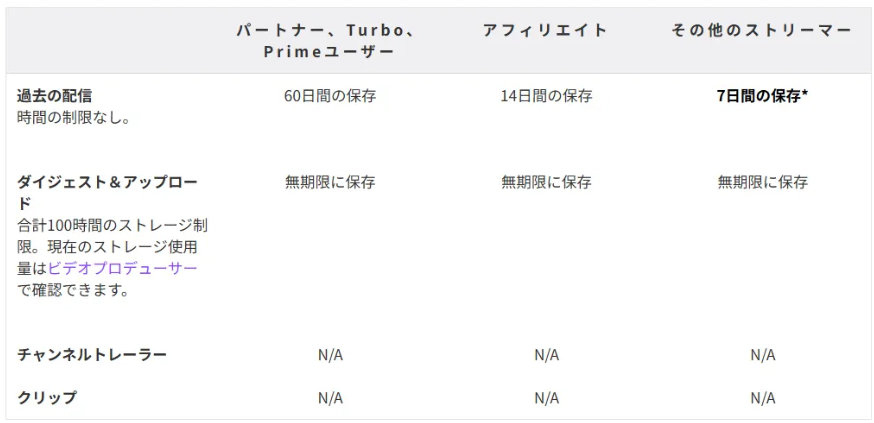 • Twitchパートナー/Prime/Turbo:60日間