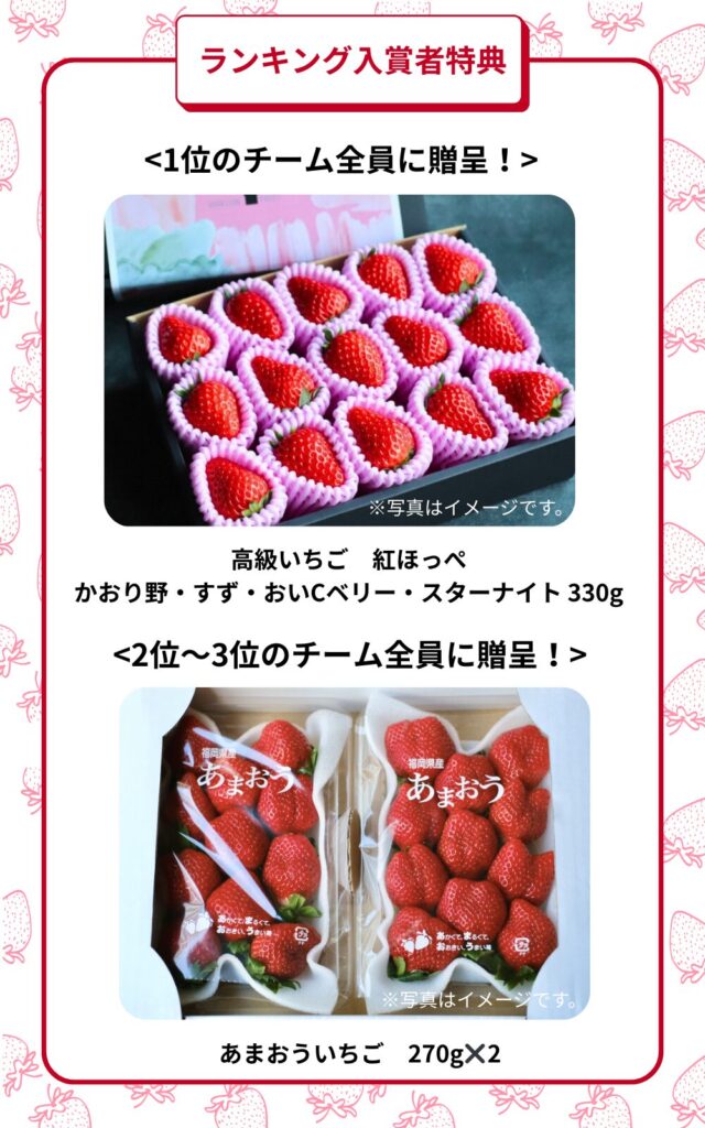 勝利チームは高級いちごの詰め合わせやあまおういちごをもらえるチャンス💕💝
