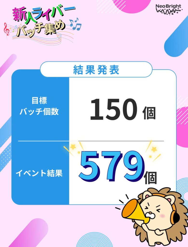 - 同期ライバーさん合計で150個以上のバッチ数を獲得する