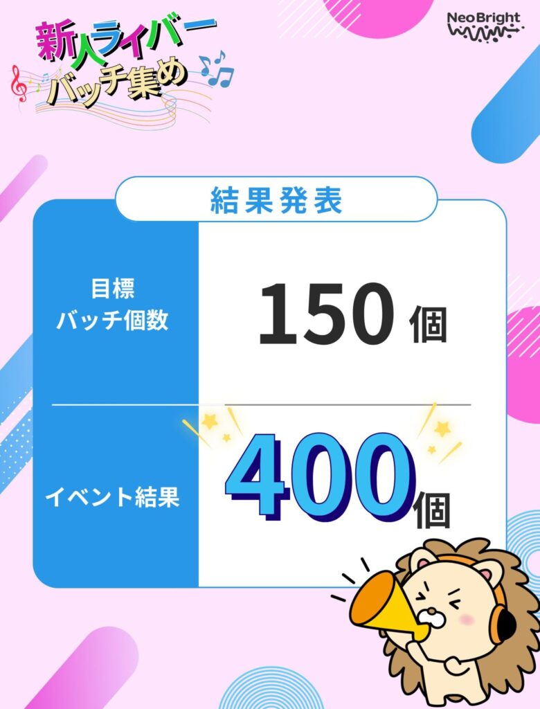 - 同期ライバーさん合計で150個以上のバッチ数を獲得する