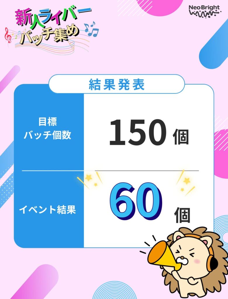- 同期ライバーさん合計で150個以上のバッチ数を獲得する