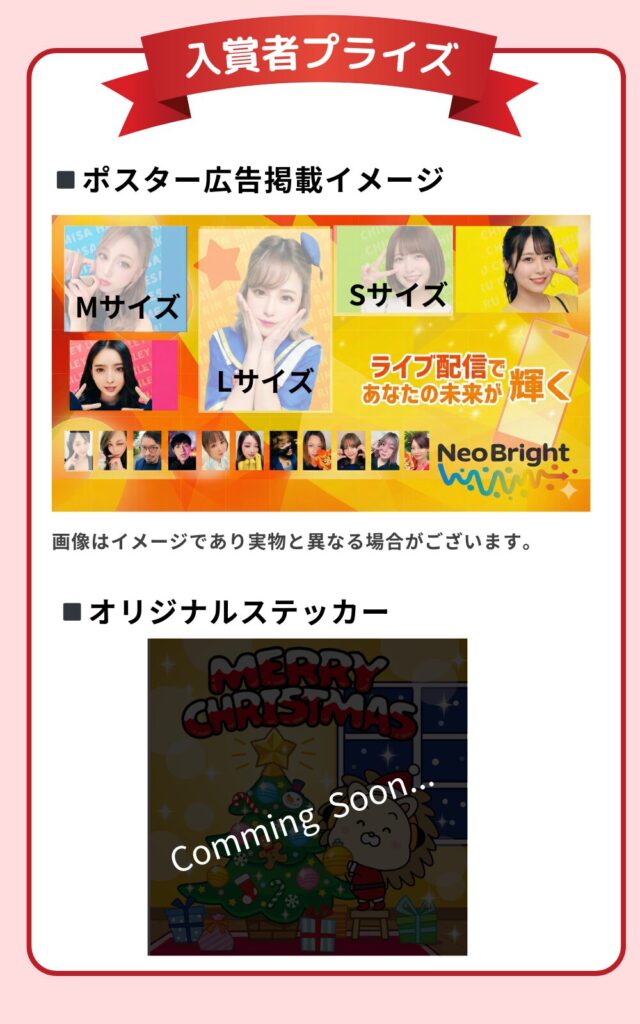 イベント期間内のライブスコアの合計数の上位ライバーさんには、NeoBrightのスターライバーとして渋谷駅のポスター広告に掲載される権利をプレゼントします❣️