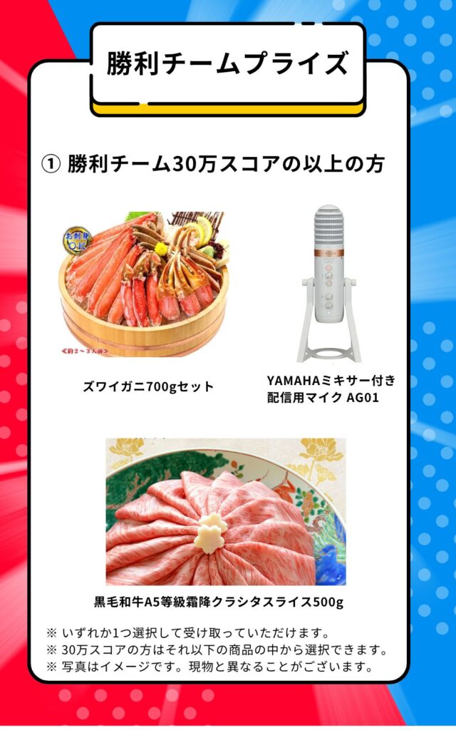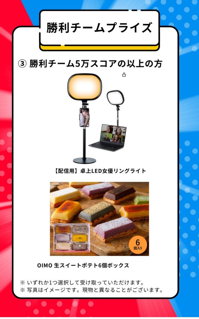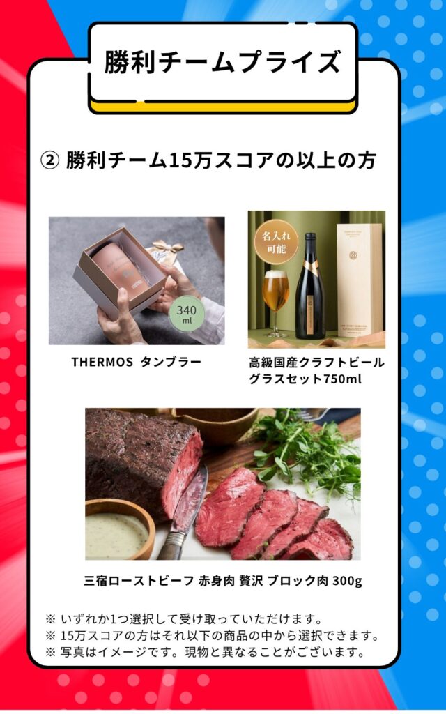 勝利チームの方には、選べるプライズセットをプレゼント💝